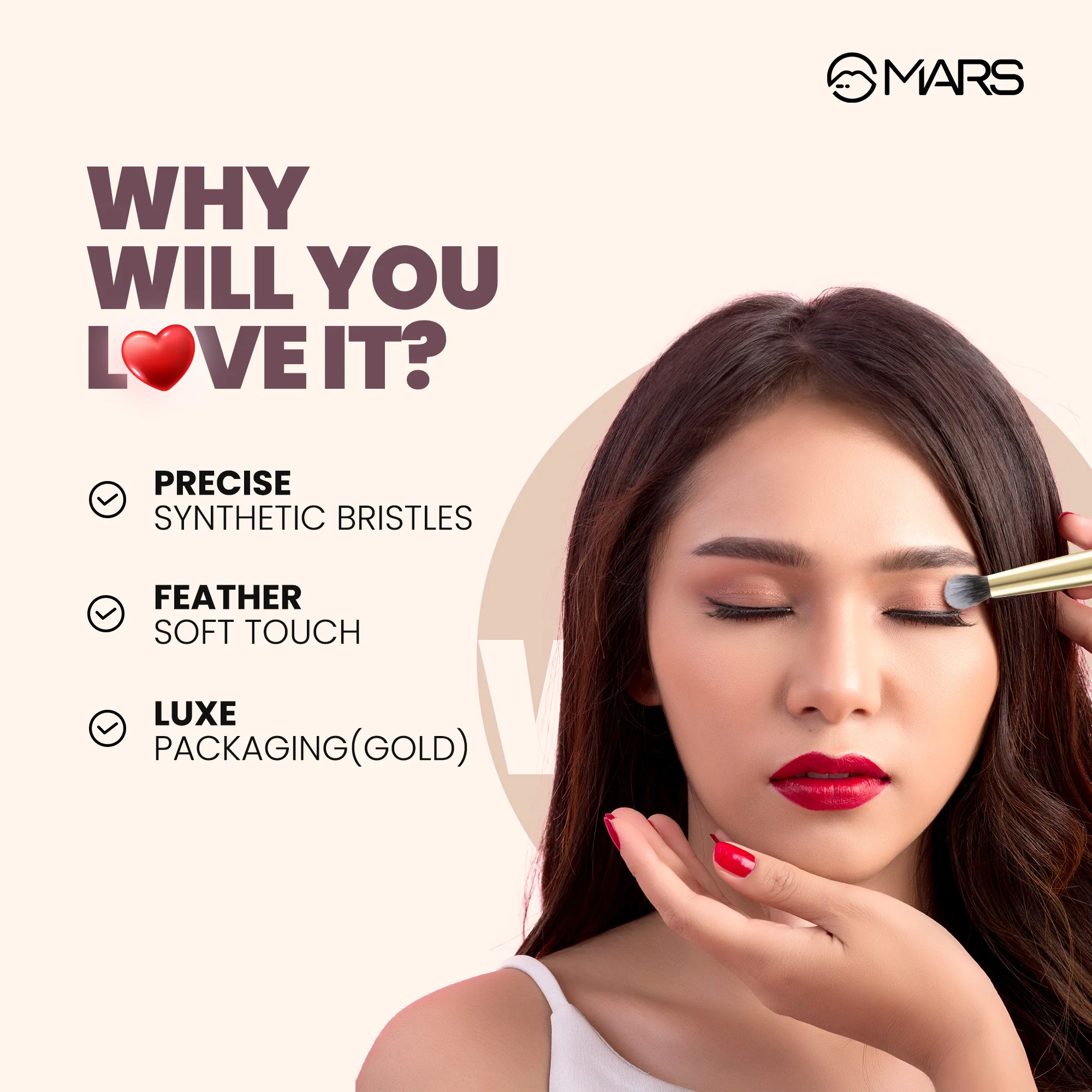 প্রফেশনাল মেকআপ লুক পেতে MARS Artist's Arsenal Pencil Brush একটি অনন্য টুল। এটি মূলত একটি বাফিং ব্রাশ হিসেবে কাজ করে যা ফাউন্ডেশনকে স্কিনের সাথে খুব স্মুথলি ব্লেন্ড করে দেয়। এর ঘন ব্রিসলস লিকুইড বা ক্রিম প্রোডাক্টকে ত্বকে সমানভাবে বসিয়ে দেয়, ফলে কোনো কেকি ভাব তৈরি হয় না। যারা ফুল কাভারেজ বেস পছন্দ করেন, তাদের জন্য এটি সেরা একটি ব্রাশ।
