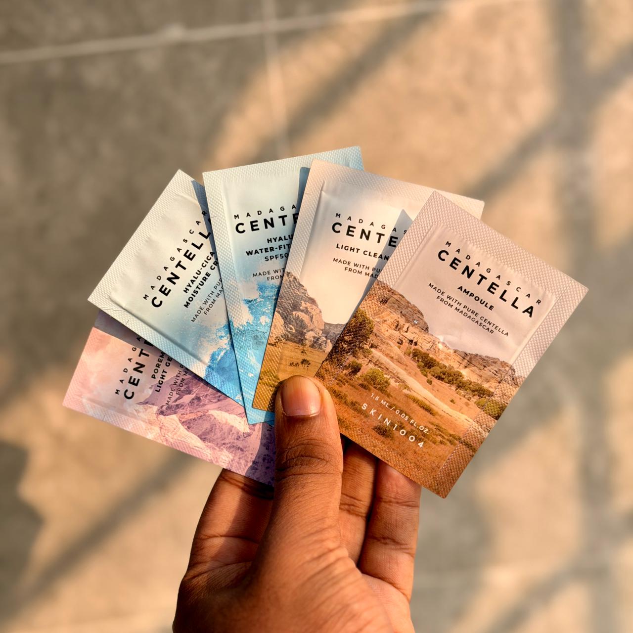 Centhella sample size of Light Cleansing Oil Ampoule Hyalu-Cica Sun serum Hyalu-cica Moisture Cream Poremizing Light Gel Cream.