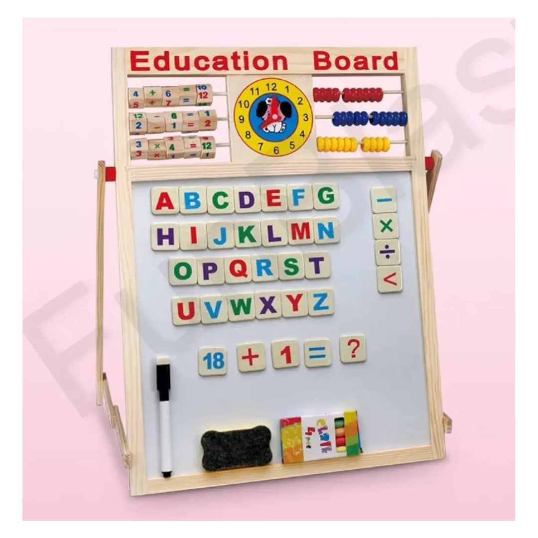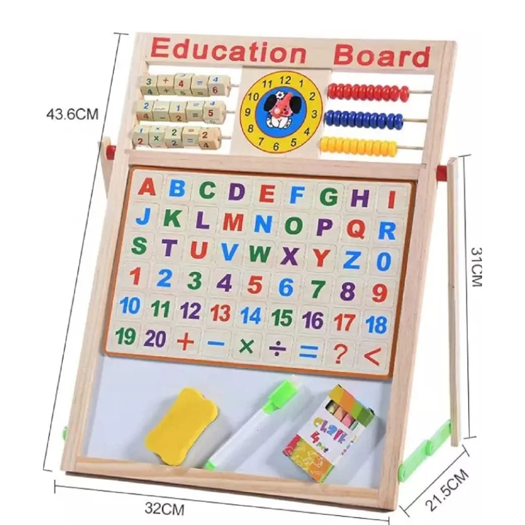 শিক্ষামূলক বহুমুখী ডাবল-পার্শ্বযুক্ত ম্যাগনেটিক কাঠের লেখা ও আঁকার বোর্ড (হোয়াইটবোর্ড + ব্ল্যাকবোর্ড) অ্যাবাকাস, গাণিতিক হিসাব এবং ইংরেজি বর্ণমালা সহ আপনার সন্তানের কল্পনাকে বোর্ডের উপর রঙ করতে দিন। ম্যাগনেটিক অক্ষর, সংখ্যা এবং চিহ্নগুলো তাদের শব্দ গঠনে এবং সৃজনশীল উপায়ে গণিত সমাধানে সহায়তা করবে। সম্পূর্ণ কাঠের তৈরি পণ্য, তাই ক্ষতিকর নয়।