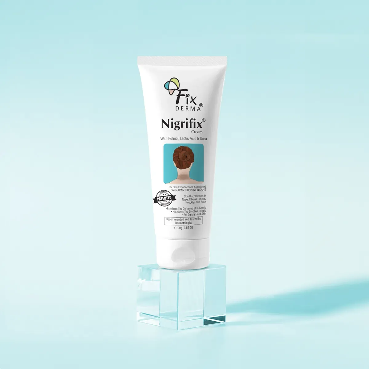 Treat stubborn dark spots and thickened skin with the Fixderma Nigrifix Cream. This 100g patented solution is specifically formulated to address hyperpigmentation associated with Acanthosis Nigricans. Combining the power of Lactic Acid, Urea, and Retinol, it works to gently exfoliate darkened skin layers, clear congestion, and deeply moisturize affected areas like the neck, elbows, and knees. It is a dermatologist-tested treatment designed to restore your skin's natural tone and smooth texture.