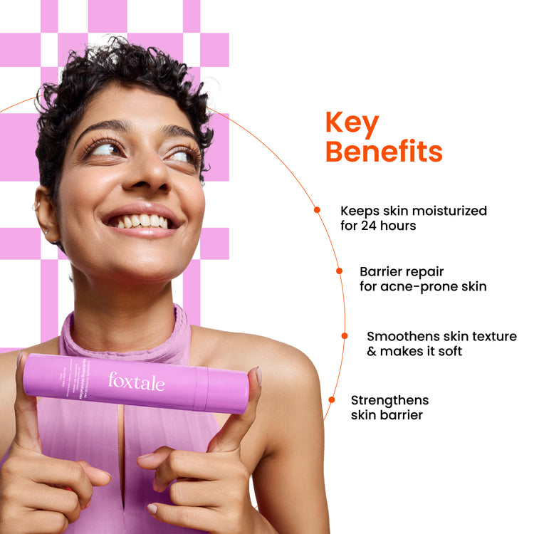 প্রাত্যহিক দূষণ এবং কেমিক্যাল ব্যবহারের ফলে আমাদের ত্বকের সুরক্ষাকারী স্তর বা বেরিয়ার দুর্বল হয়ে পড়ে। Foxtale Ceramide Moisturizer সেই স্তরটিকে পুনরায় গঠন করতে সাহায্য করে। এটি একটি ওজনে হালকা এবং নন-গ্রিজি ফর্মুলা, যা ত্বকে দ্রুত শোষণ হয়ে যায়। যাদের ত্বক খুব দ্রুত আর্দ্রতা হারিয়ে ফেলে বা ফ্ল্যাকি হয়ে যায়, তাদের জন্য এটি একটি পারফেক্ট ডেইলি ময়েশ্চারাইজার।