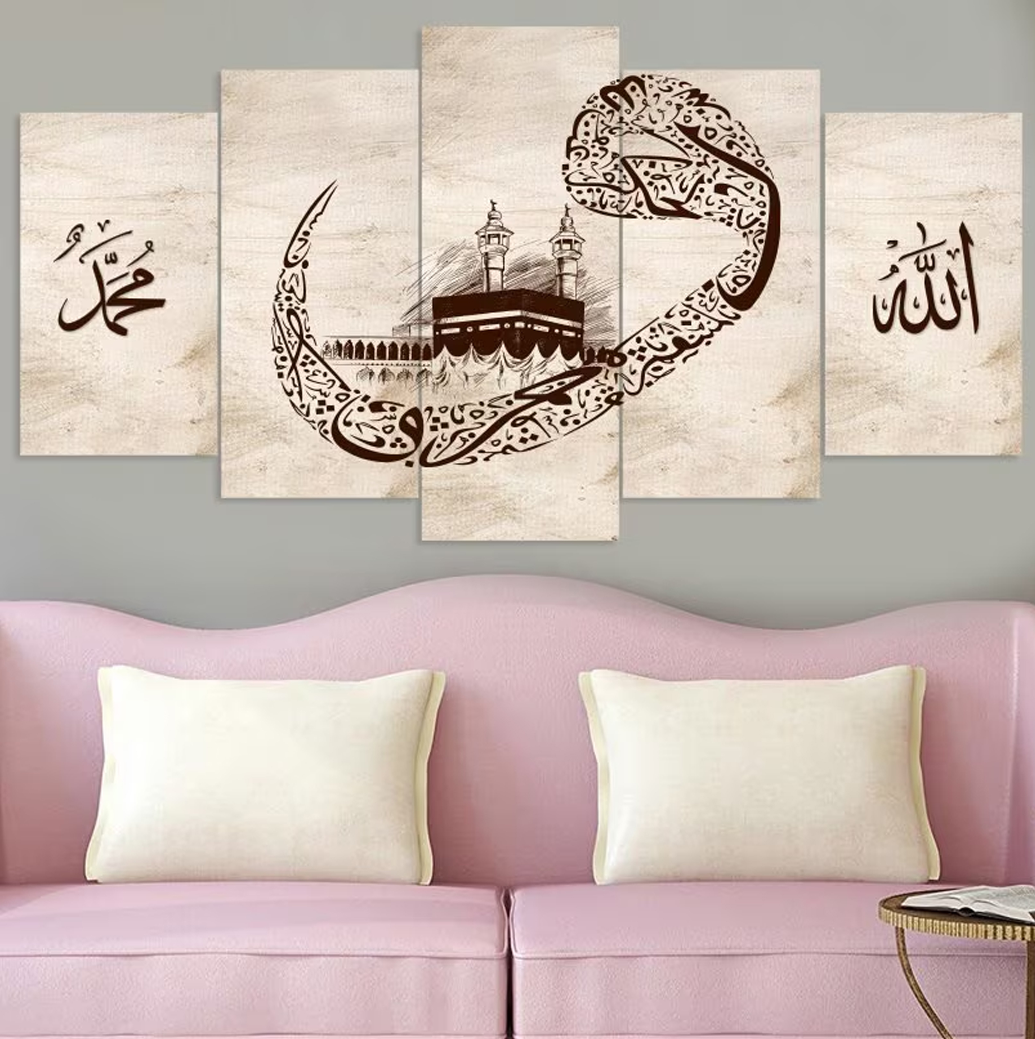 5 pieces Islamic wall art canvas print for Muslim home decors and best Islamic gifts for Muslims from Quran