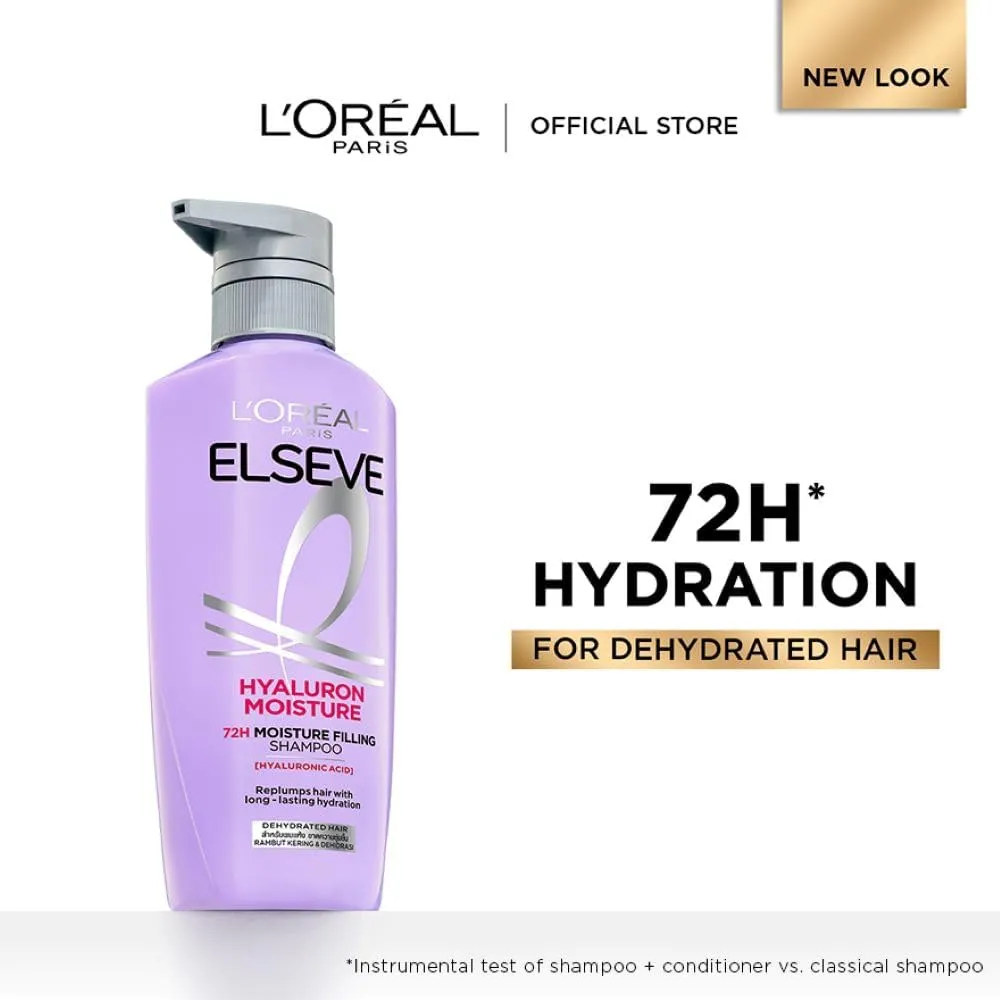 Experience the power of skin-care in your hair-care with L'Oreal Paris Hyaluron Moisture 72H Shampoo. Infused with the hydrating hero Hyaluronic Acid, this shampoo instantly fills your hair with moisture, keeping it bouncy and shiny for up to 72 hours. It deeply cleanses without weighing your hair down, making it the perfect solution for dehydrated and dull locks.