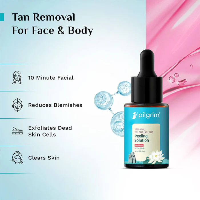0ত্বকের নির্জীবতা এবং অমসৃণ টেক্সচার দূর করতে Pilgrim Peeling Solution একটি জাদুকরী পণ্য। মাত্র ১০ মিনিটের এই ট্রিটমেন্টে আপনার ত্বক হবে আরও উজ্জ্বল, মসৃণ এবং দাগমুক্ত। ৩০ মিলিলিটারের এই সলিউশনটি ত্বকের উপরিভাগ এবং পোরসের গভীর থেকে মৃত কোষ ও ময়লা পরিষ্কার করে ইনস্ট্যান্ট গ্লো নিশ্চিত করে।