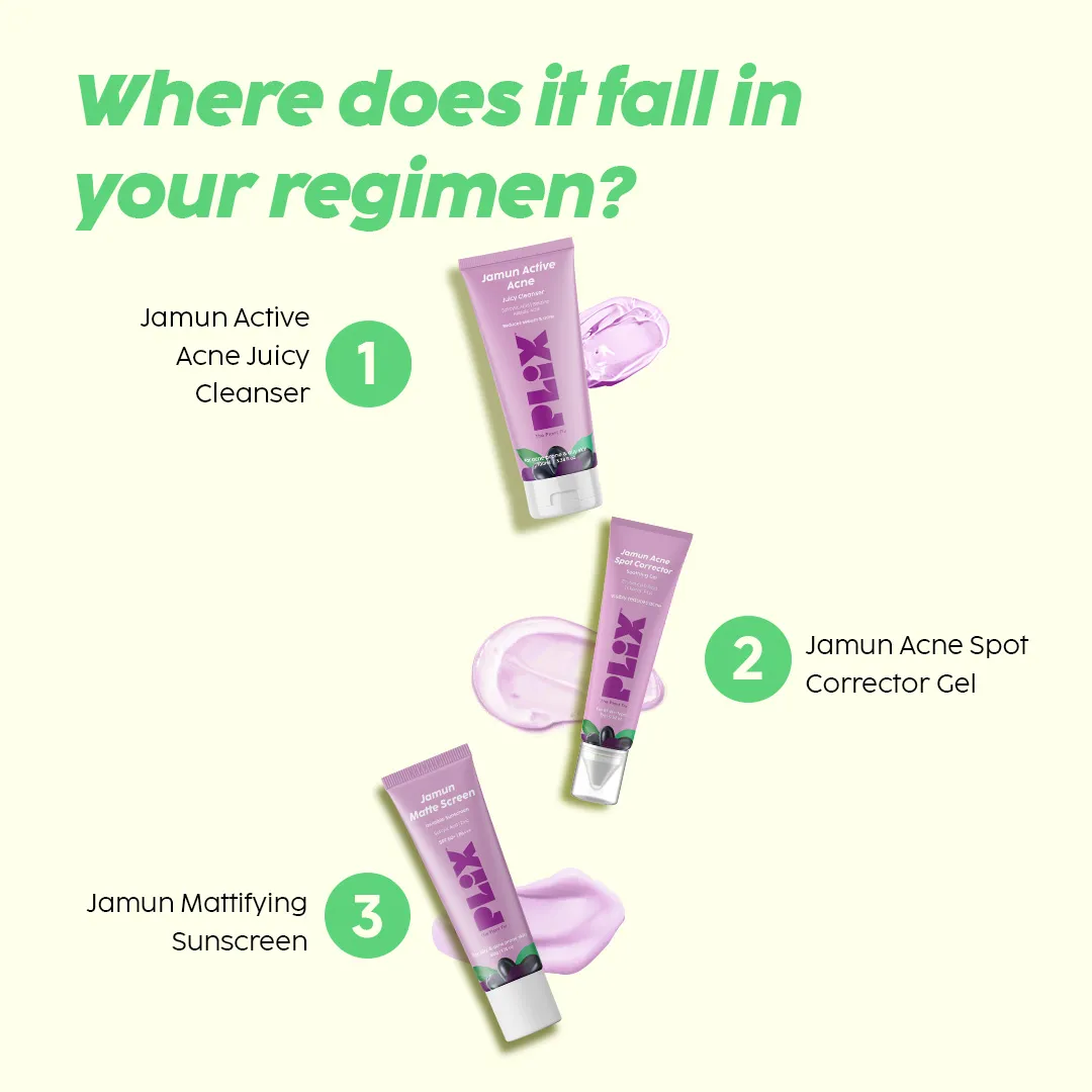 Clear active acne and prevent future breakouts with Plix Jamun Acne Spot Corrector. This targeted soothing gel combines 2% Salicylic Acid and the advanced Trikenol™ Plus to rapidly reduce pimple size, redness, and inflammation. Infused with Jamun extracts, it detoxifies your skin for a clearer, smoother complexion.