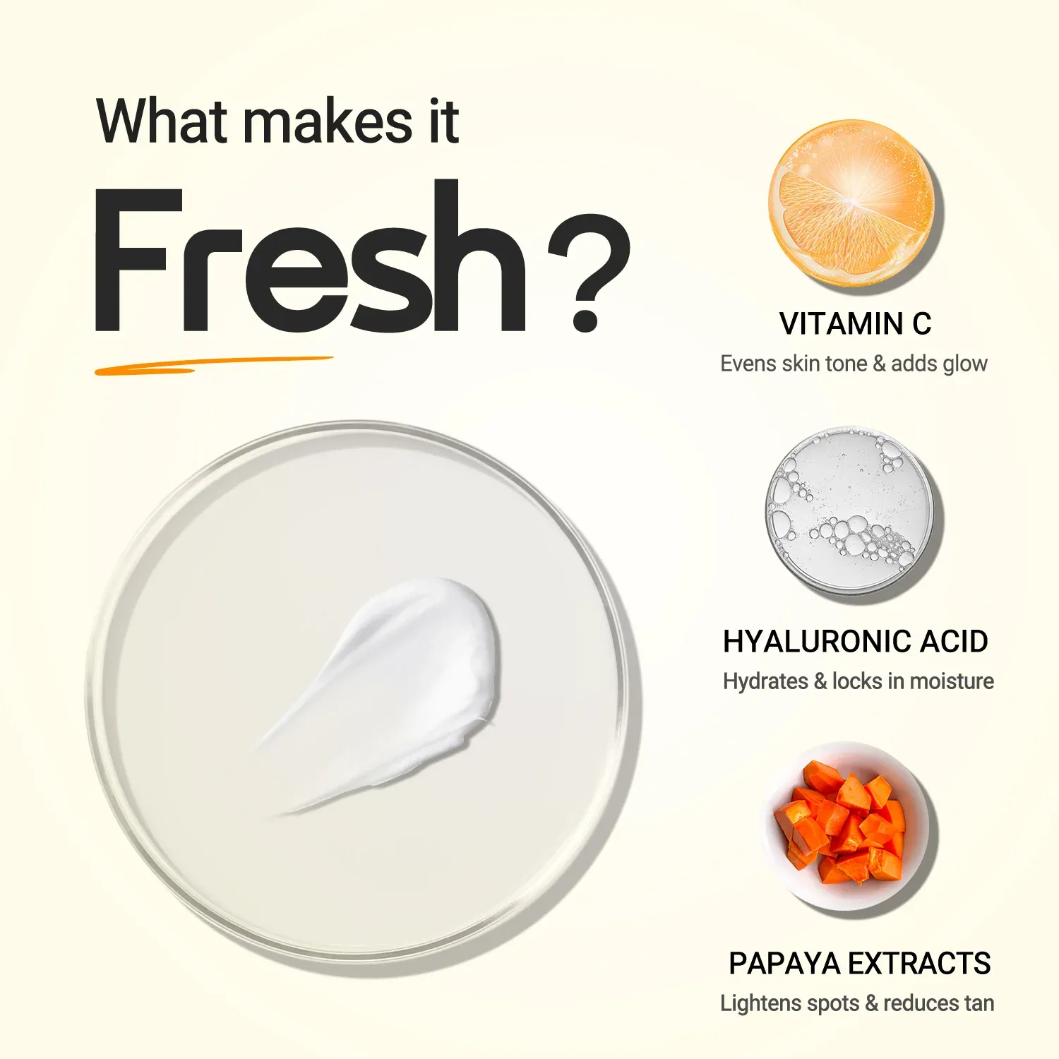 -Brightening with Vitamin C & Papaya: এতে থাকা Papaya Extract এবং Vitamin C ত্বকের ডালনেস দূর করে এবং হাইপারপিগমেন্টেশন কমিয়ে ত্বককে প্রাকৃতিকভাবে উজ্জ্বল ও সজীব করে তোলে।