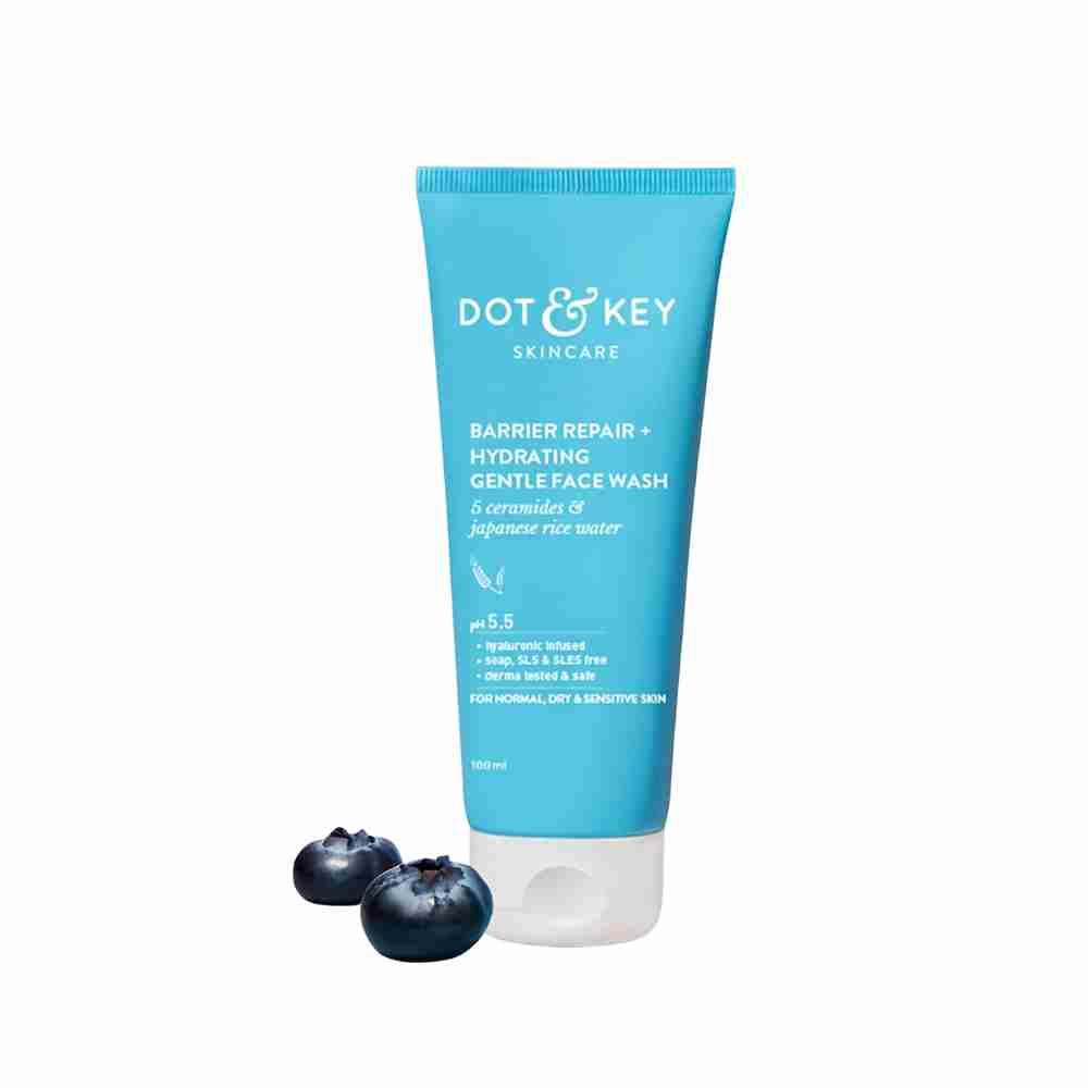 Maintain the integrity of your skin’s health with the Dot & Key Barrier Repair + Hydrating Gentle Face Wash, a specialized formula developed for those with dry, sensitive, or easily irritated complexions. Unlike traditional cleansers that can leave the skin feeling tight or "squeaky clean," this creamy wash focuses on Barrier-Safe Cleansing. It utilizes ultra-gentle surfactants that effectively lift away dirt and pollutants while leaving the vital lipid layer intact, ensuring that your skin's first line of defense remains strong and resilient.The formula is enriched with a clinical blend of Ceramides, which act as the building blocks of the skin barrier, helping to repair micro-damage and prevent transepidermal water loss. This is paired with Hyaluronic Acid, a powerful humectant that binds moisture to the skin cells, providing a boost of hydration during the cleansing process. The result is a soothing, non-foaming or low-foaming experience that calms redness and eliminates the discomfort of dryness. This face wash is the ideal foundation for any restorative skincare regimen, ensuring your skin is clean, hydrated, and perfectly balanced.