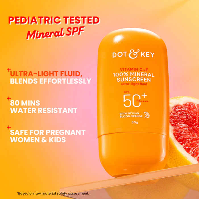 ডট অ্যান্ড কি (Dot & Key)-এর এই মিনারেল সানস্ক্রিনটি মূলত একটি ফিজিক্যাল ব্যারিয়ার হিসেবে কাজ করে। সাধারণ সানস্ক্রিন যেখানে কেমিক্যাল ব্যবহার করে রোদ শোষণ করে, এটি সেখানে প্রাকৃতিক খনিজ (Zinc & Titanium) ব্যবহার করে রোদকে আয়নার মতো প্রতিফলিত করে দেয়। ফলে এটি ব্যবহারের সাথে সাথেই সুরক্ষা শুরু হয়। এটি কোনো হার্শ কেমিক্যাল বা সুগন্ধি যুক্ত নয়, তাই এটি ব্রণের প্রবণতা আছে এমন ত্বক বা প্রেগনেন্ট নারীদের জন্য অত্যন্ত নিরাপদ। এর অয়েল-ফ্রি ফর্মুলা ত্বককে ম্যাট রাখে এবং ভিটামিন সি ত্বকের জেল্লা ধরে রাখতে সাহায্য করে।