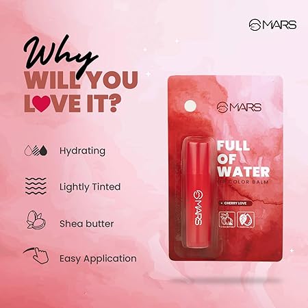 MARS Hydratint hydrates, heals, and nourishes, keeping your lips looking smoother, softer, and more youthful. Enhances the appearance of lips, locking in moisture and adding a hint of colour for a soft, natural look.