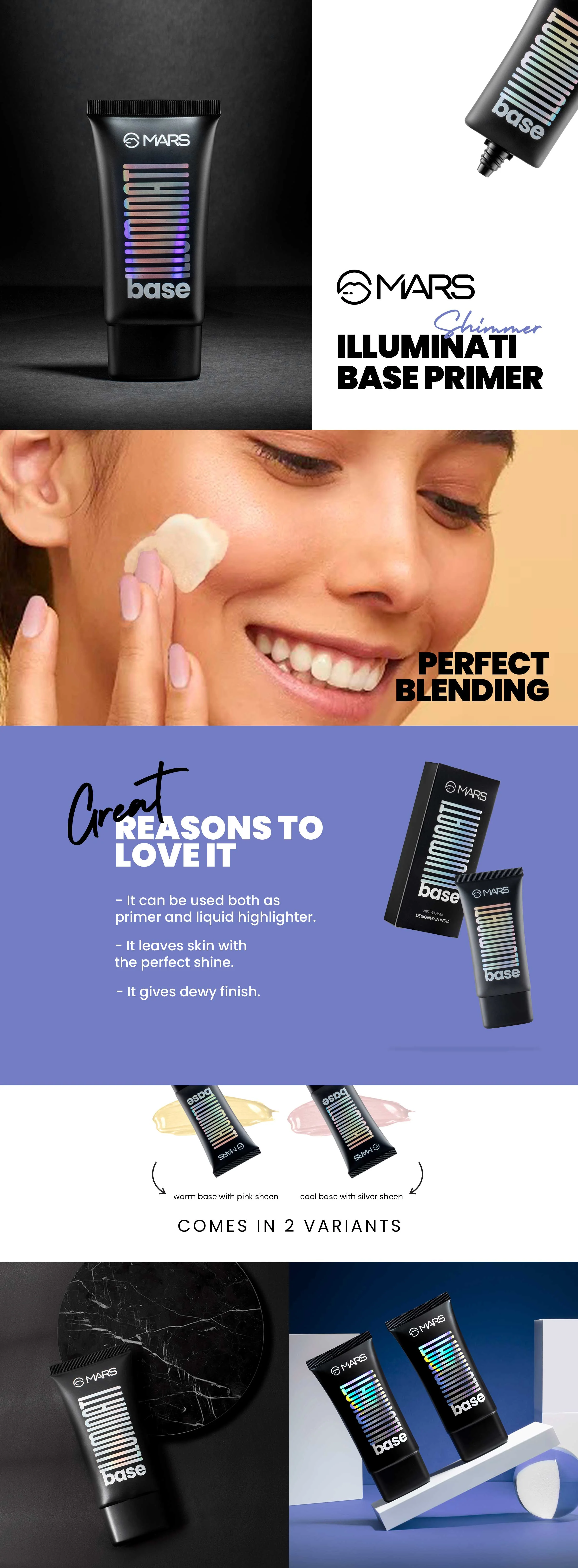 MARS Illuminati Base is an Illuminating and Dewy base strobe cream. It is Loaded with light reflecting micro particles. You can use it underneath the foundation or as a highlighter above foundation.