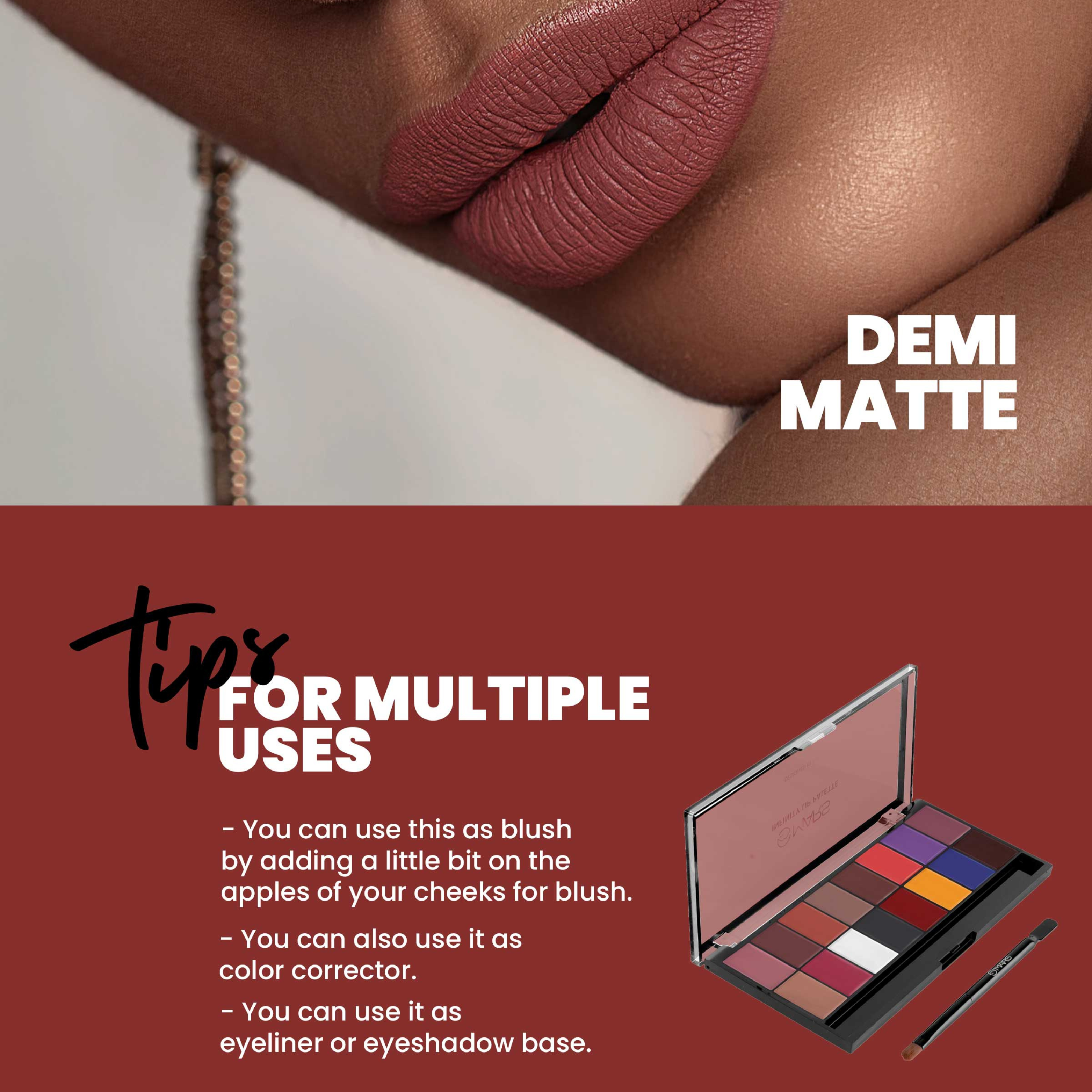 MARS Infinity Demi Matte Lip Palette has 16 stunning demi-matte lip shades which lets you unleash your inner artist. You can mix and match any shade to create your own signature shade.