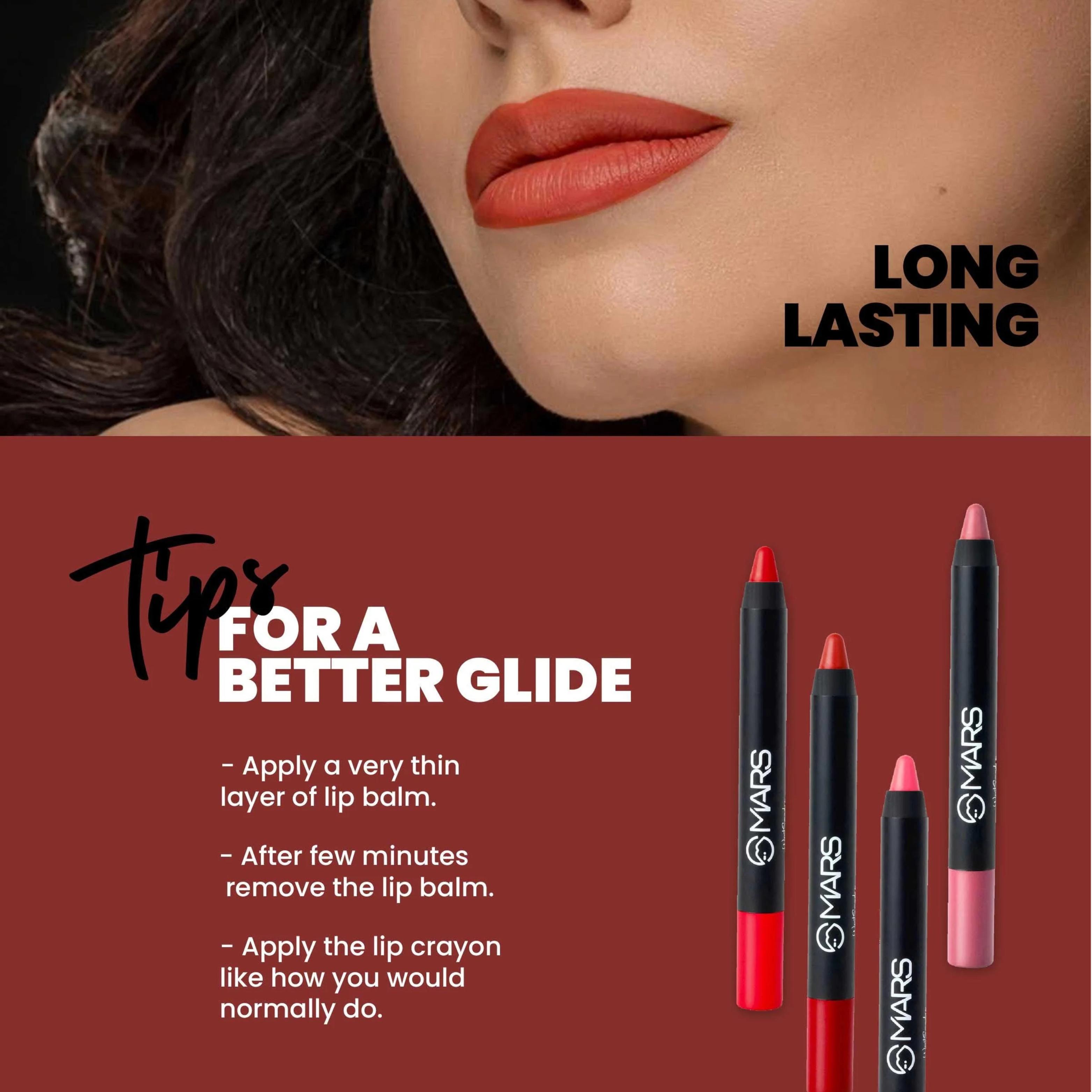 Unlock beauty that stays with you all day with the MARS Won’t Smudge, Won’t Budge Lip Crayon. This matte-finish masterpiece comes in 24 shades to match every personality and mood. Designed for style, comfort and confidence, it is your go-to for effortless glam that lasts.