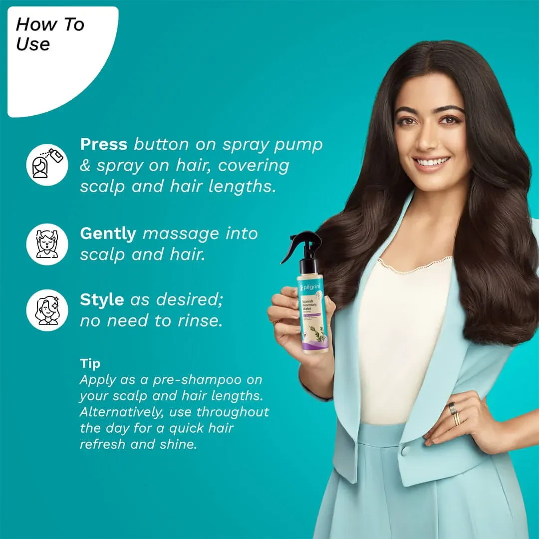 Revitalize your scalp and accelerate hair growth with Pilgrim Spanish Rosemary Water Spray. Infused with pure Spanish Rosemary and Biotin, this lightweight, water-based tonic strengthens hair follicles, reduces hair fall, and promotes thicker, healthier hair without any greasiness.