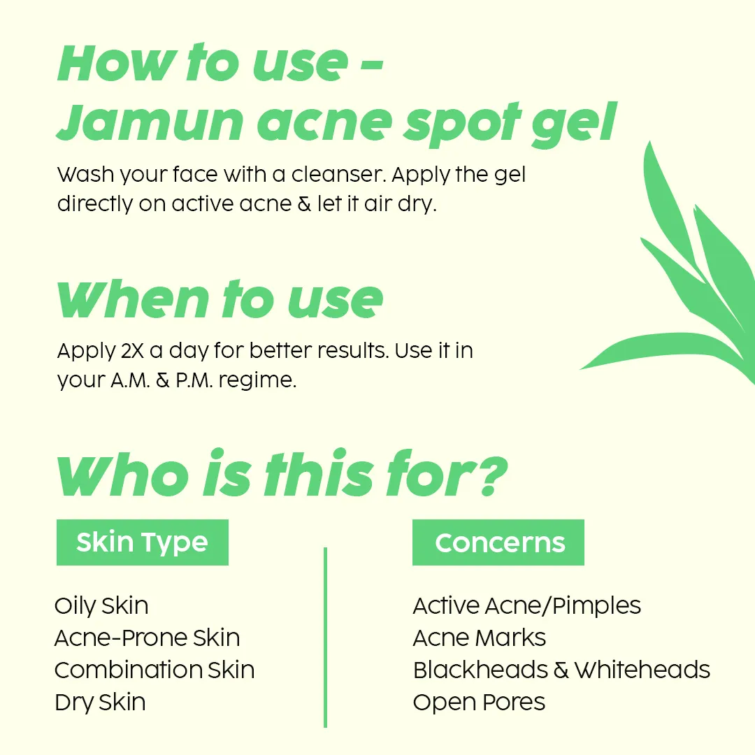 -Soothing & Detoxifying: Jamun Extract বা জামের নির্যাস ত্বককে ডিটক্স করে এবং ব্রণের কারণে হওয়া জ্বালাপোড়া ও লালচে ভাব (redness) দ্রুত কমিয়ে ত্বককে শান্ত রাখে।