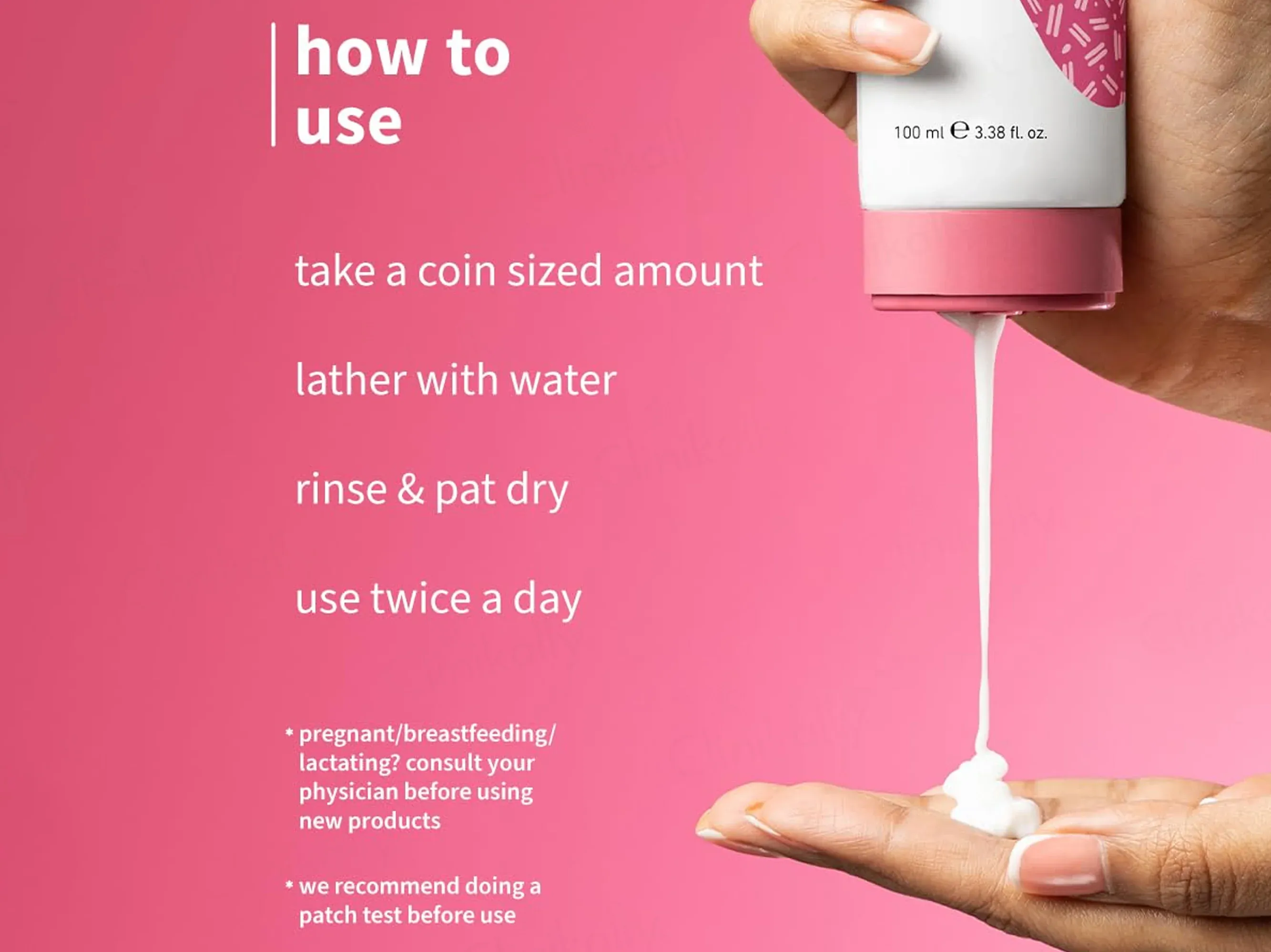 ব্যবহারের নিয়ম: মুখ জল দিয়ে ভিজিয়ে নিন। অল্প পরিমাণ ফেসওয়াশ হাতের তালুতে নিয়ে পুরো মুখে বৃত্তাকার মোশনে আলতো করে ১ মিনিট ম্যাসাজ করুন। এরপর জল দিয়ে ধুয়ে ফেলুন। ভালো ফলাফলের জন্য সকালে এবং রাতে এটি ব্যবহার করুন।
