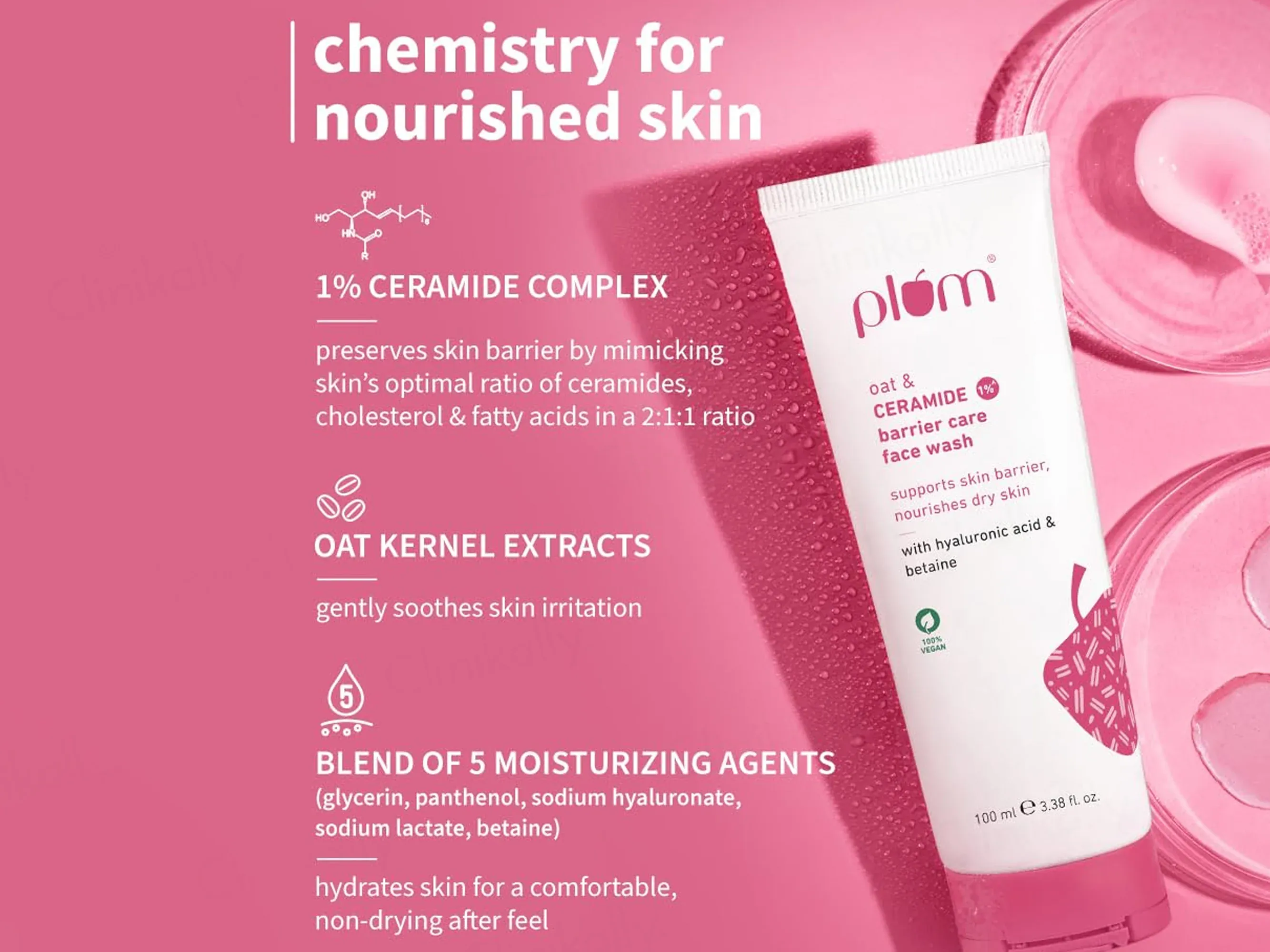 Restore your skin’s natural health with the Plum 1% Oat & Ceramide Barrier Care Face Wash. This 100ml cream-based cleanser is a sanctuary for sensitive and irritated skin. Formulated with 1% Ceramide to repair the skin barrier and soothing Oat extracts, it gently removes dirt while locking in moisture. This fragrance-free and soap-free face wash ensures that your skin feels calm, hydrated, and protected after every wash—never tight or dry.