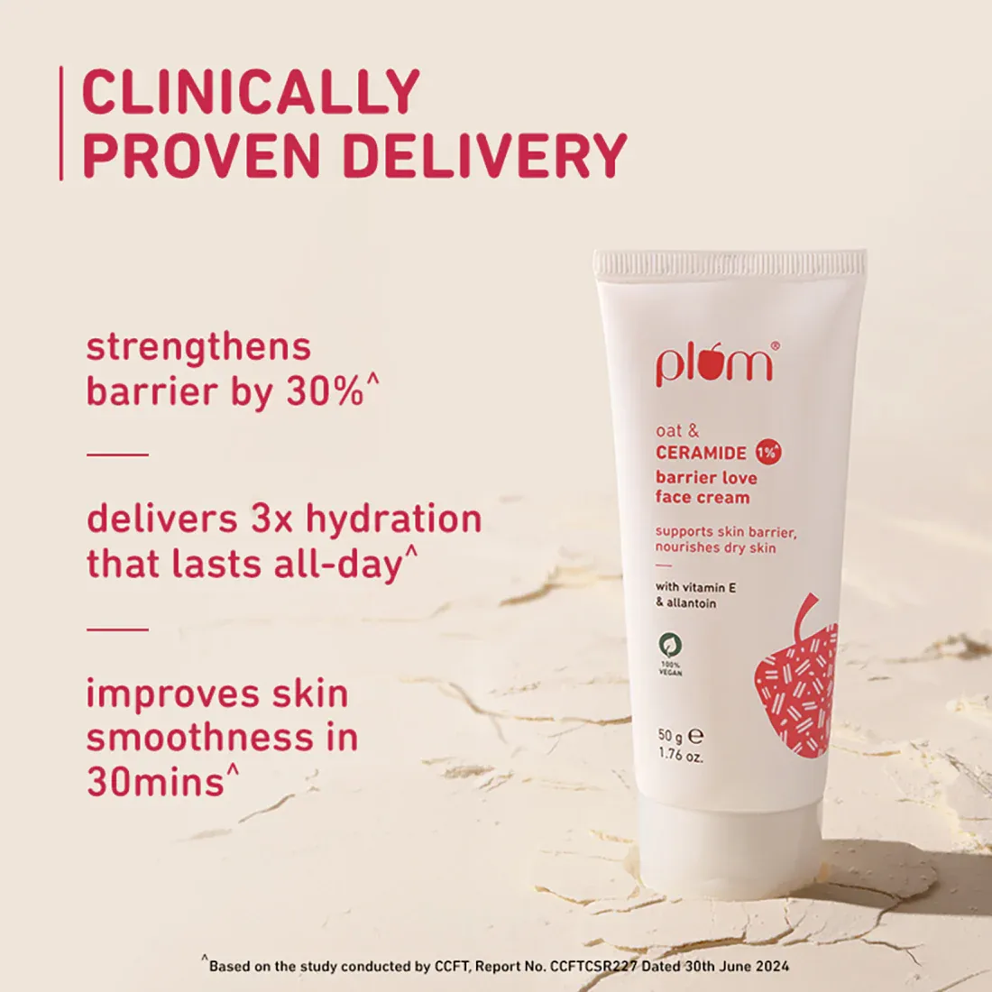 Nourish and protect your skin with the deeply restorative Plum 1% Oat & Ceramide Barrier Love Face Cream. This 50g intensive moisturizer is specifically formulated to rescue dry and sensitive skin by strengthening the skin's natural moisture barrier. Infused with 1% Ceramide and soothing Oat extracts, it provides long-lasting hydration while calming inflammation and redness. Its rich yet non-greasy texture leaves your skin feeling incredibly soft, resilient, and comfortable all day long.