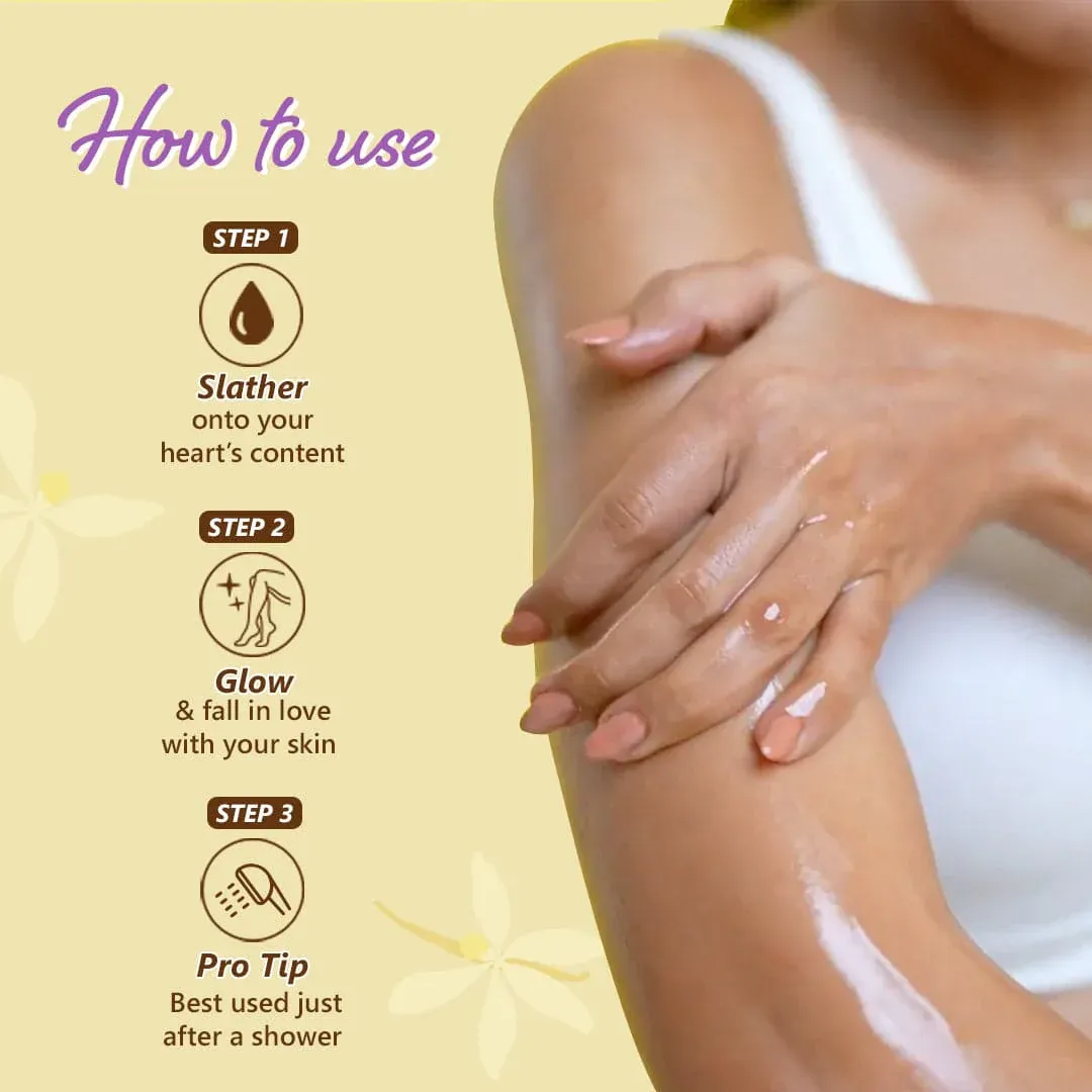 ব্যবহারের নিয়ম: গোসলের পর শরীর হালকা ভেজা থাকা অবস্থায় কয়েক ফোঁটা অয়েল পুরো শরীরে ম্যাসাজ করুন। এতে আর্দ্রতা সবচেয়ে ভালো লক হয়। এছাড়া আপনি আপনার বডি লোশনের সাথে কয়েক ফোঁটা মিশিয়েও ব্যবহার করতে পারেন বাড়তি উজ্জ্বলতার জন্য।