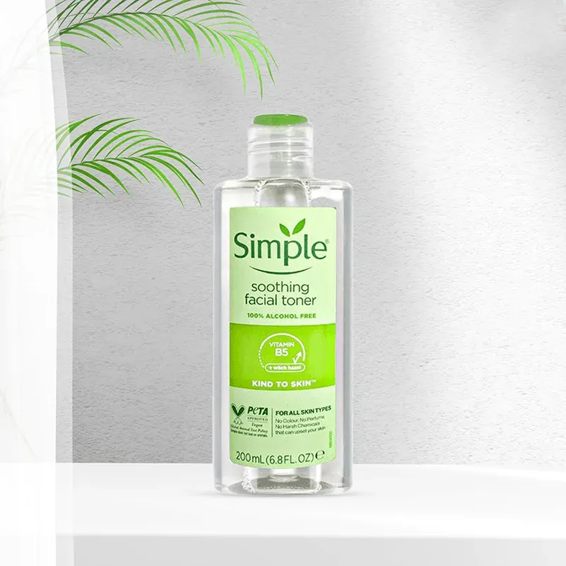 Refresh and prime your skin with the Simple Kind to Skin Soothing Facial Toner (200ml). This gentle, alcohol-free formula is designed to remove the last traces of dirt and makeup while balancing your skin's natural pH level. Infused with skin-loving ingredients like Pro-Vitamin B5, Witch Hazel, and Allantoin, it leaves your face feeling clean, fresh, and hydrated. Perfect for even the most sensitive skin, it contains no harsh chemicals, artificial perfumes, or colors.