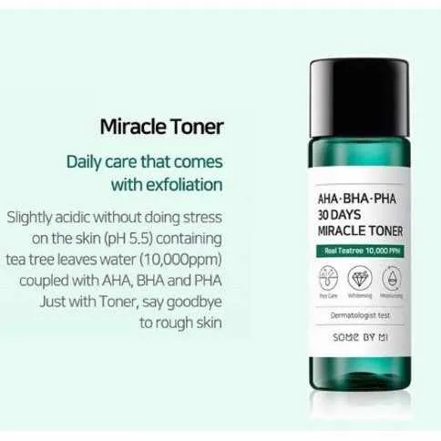 ত্বকের মরা কোষ দূর করে এবং ব্রণের সমস্যা কমিয়ে ত্বককে পরিষ্কার ও উজ্জ্বল করতে Some By Mi AHA BHA PHA 30 Days Miracle Toner (30ml) বিশ্বজুড়ে সমাদৃত। এর বিশেষ থ্রি-এসিড ফর্মুলা ত্বকের গভীরে গিয়ে কাজ করে।