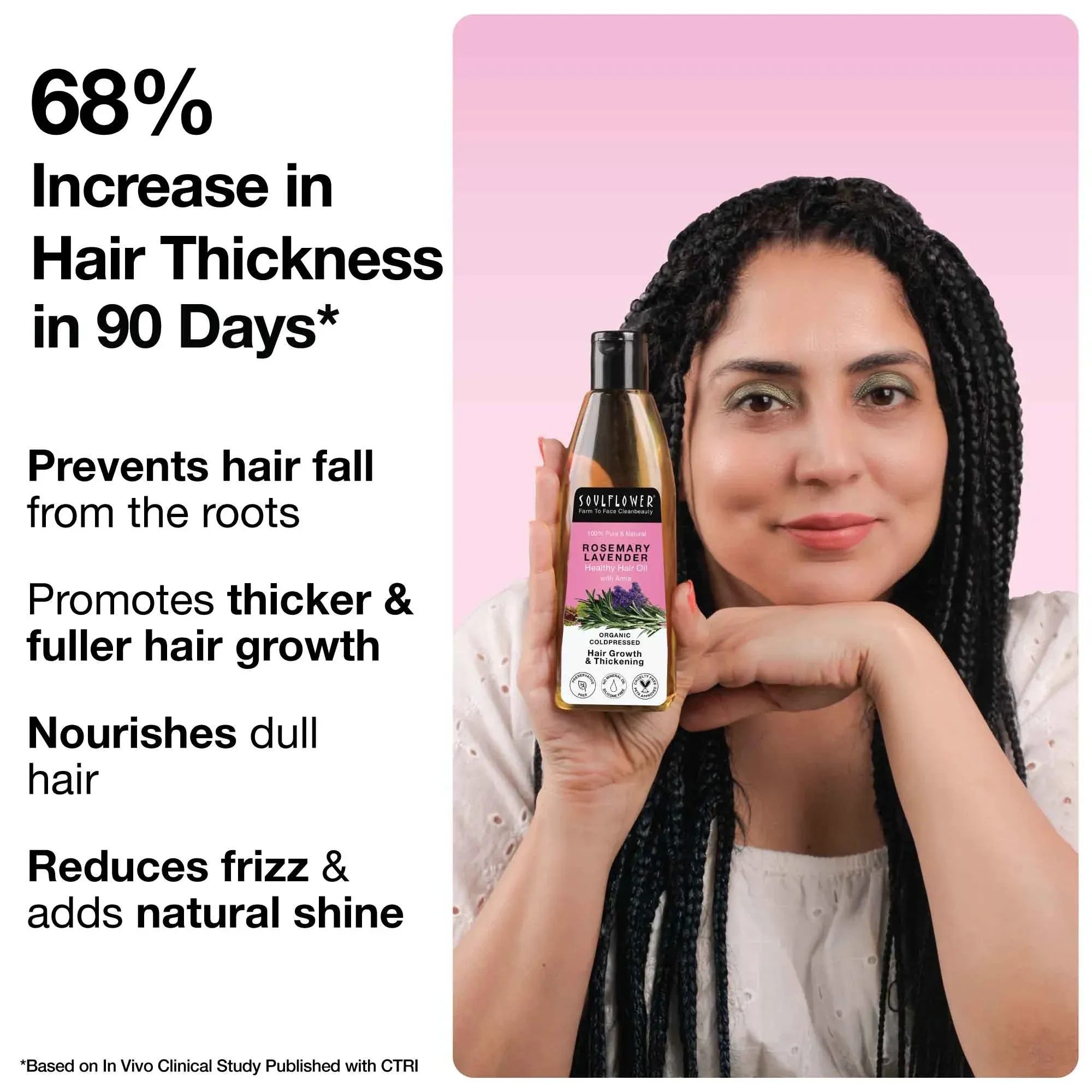 Nourish your hair from root to tip with Soulflower Rosemary Lavender Healthy Hair Oil. This 225ml premium blend is cold-pressed to ensure maximum potency, combining the hair-strengthening benefits of Rosemary with the soothing properties of Lavender. It effectively targets hair thinning, split ends, and dry scalp while promoting a thicker, lusher mane. The calming aroma of Lavender also helps relieve stress, making every oil massage a spa-like experience for your hair and mind.
