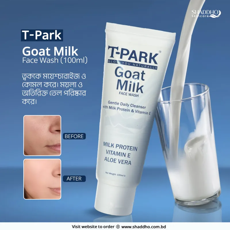 আপনার স্কিন কি ফেসওয়াশ ব্যবহারের পর খুব বেশি শুষ্ক বা খসখসে হয়ে যায়? Give your skin the nourishment it deserves with T-Park Goat Milk Face Wash. গোট মিল্ক বা ছাগলের দুধ যুগ যুগ ধরে ত্বকের উজ্জ্বলতা এবং কোমলতা ধরে রাখতে ব্যবহৃত হয়ে আসছে। This face wash is like a moisturizing treat for your face!