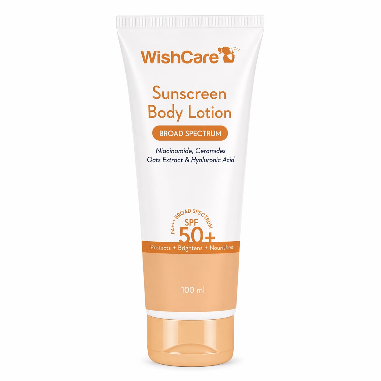 Protect and nourish your body with WishCare SPF 50 PA+++ Sunscreen Body Lotion. This advanced formula offers high-level broad-spectrum protection against harmful UVA and UVB rays, preventing sun damage and premature aging. Enriched with Niacinamide and natural extracts like Carrot Seed and Raspberry, it not only shields your skin but also works to brighten your complexion and maintain deep hydration throughout the day.